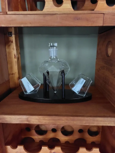 🔹 Drveno postolje: prirodno obrađeno drvo koje vrču i čašama daje stabilnost i posebnu estetsku vrijednost. Savršeno za izlaganje u dnevnom boravku, radnoj sobi ili na kućnom mini baru