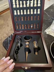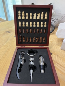 Šah set s otvaračima vina je poklon koji spaja igru i uživanje u pokojoj ukusnoj čaši vina, a sviđa se svakome! Tražite nešto drugačije, originalno i praktično? Ovaj šahovski set s vinskim priborom savršen je spoj elegancije, zabave i funkcionalnosti te je idealan kao poklon ili čak kao ukras u vlastitom domu.
