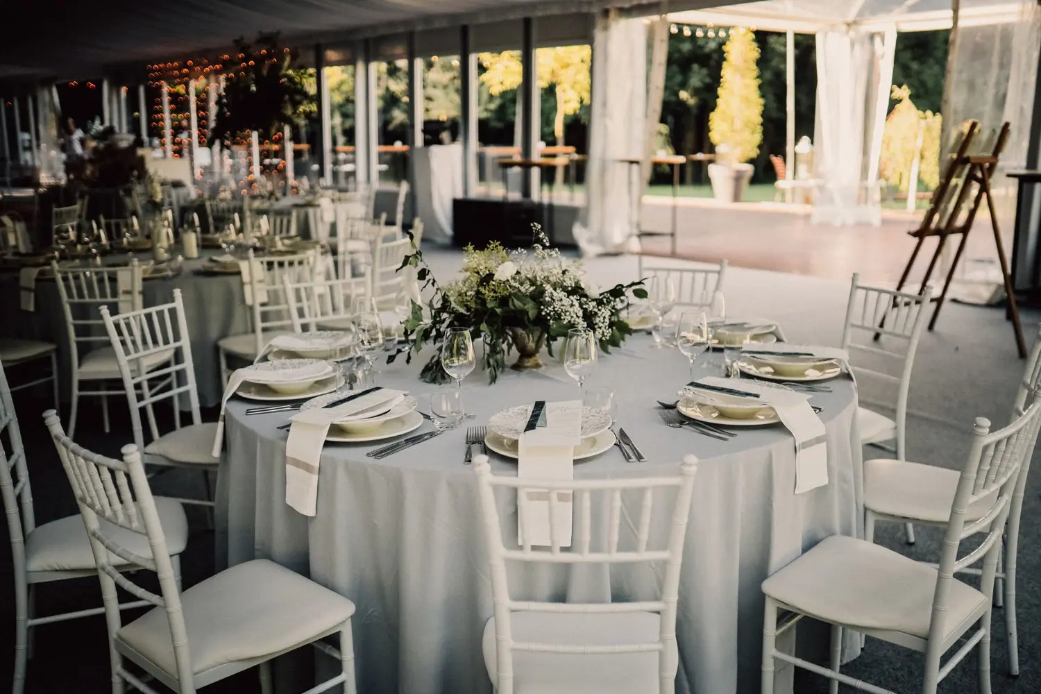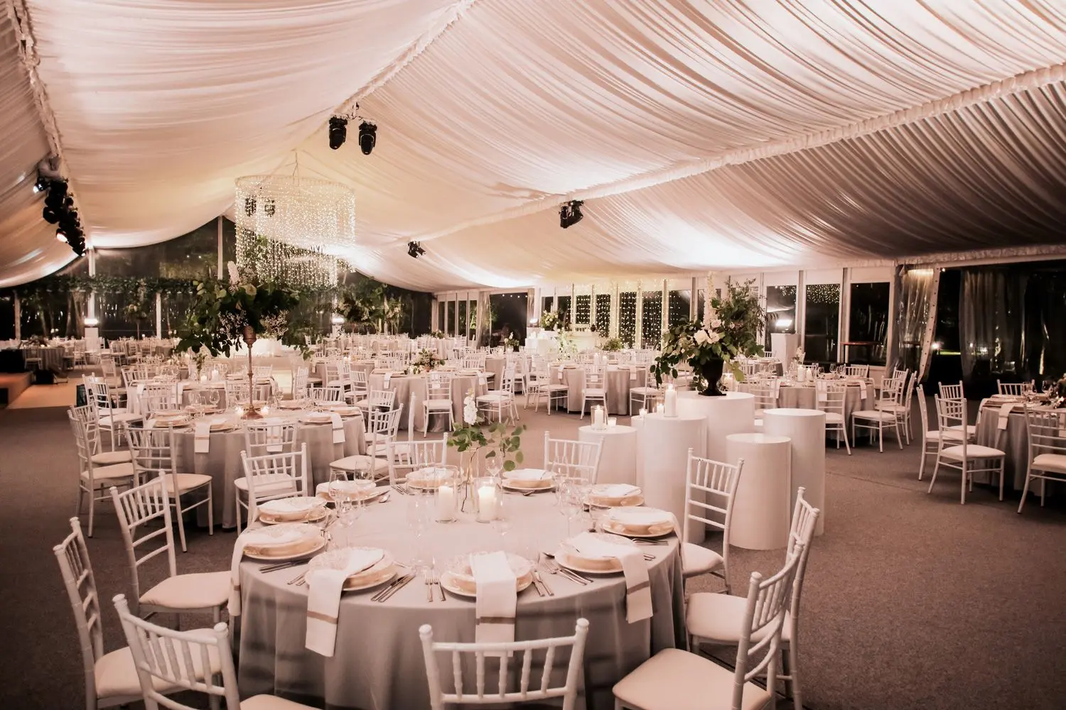 Corberon šator je elegantan bijeli prostor s kapacitetom do 450 uzvanika, što ga čini idealnim izborom za veće proslave. Interijer je pažljivo osmišljen tako da uvijek zadrži savršenu ravnotežu bez osjećaja pretrpanosti ili praznine. Središnji dio zauzima veliki plesni podij, mjesto gdje se odvija najviše čarolije. Ispred šatora nalazi se prostrana terasa savršena za doček gostiju i opušteno druženje prije nego što slavlje službeno započne.