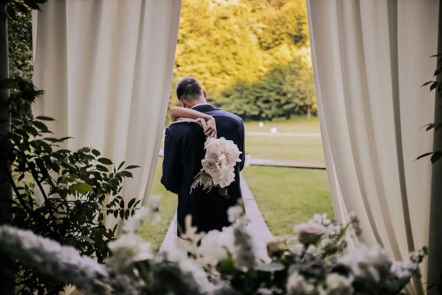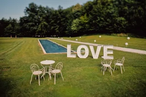 Do šatora vodi šumski putić koji prelazi preko potočića te drvena staza koja se proteže kroz livadu vodi vas do mjesta koje oduzima dah. Pogled koji se otvara prema ovoj čarobnoj lokaciji teško je opisati riječima. Već pri samom dolasku, zaustavit će vas zanimljive tematske dekoracije idealne za prve fotografije s vašeg dana iz snova. A odmah zatim veliko ogledalo vode u bazenu ispred šatora koje dodatno pojačava dojam romantike i luksuza.
