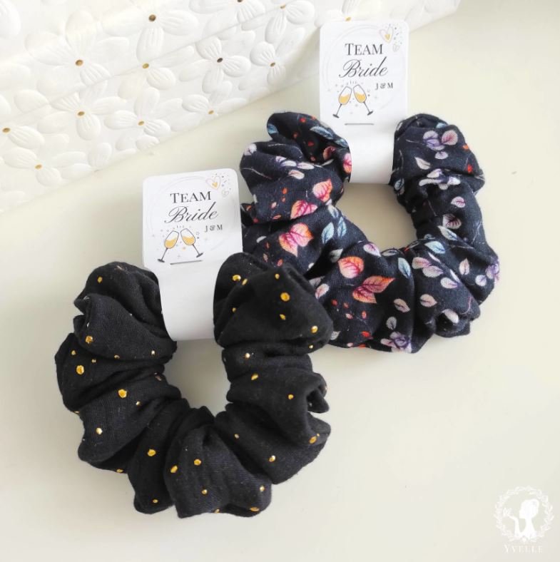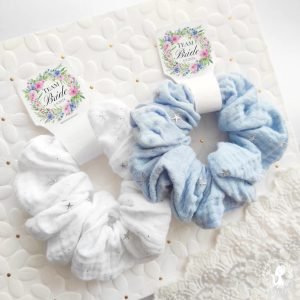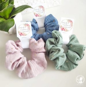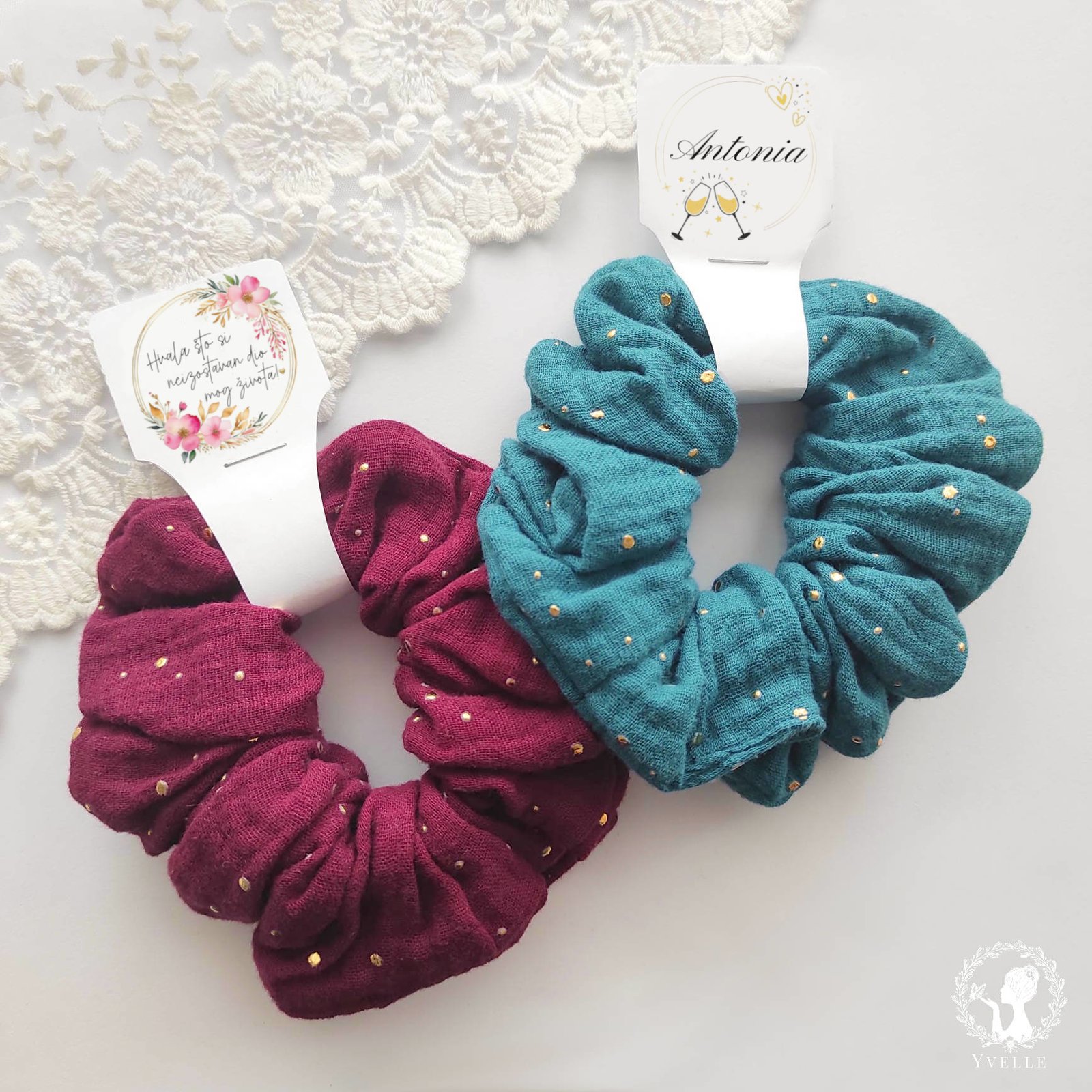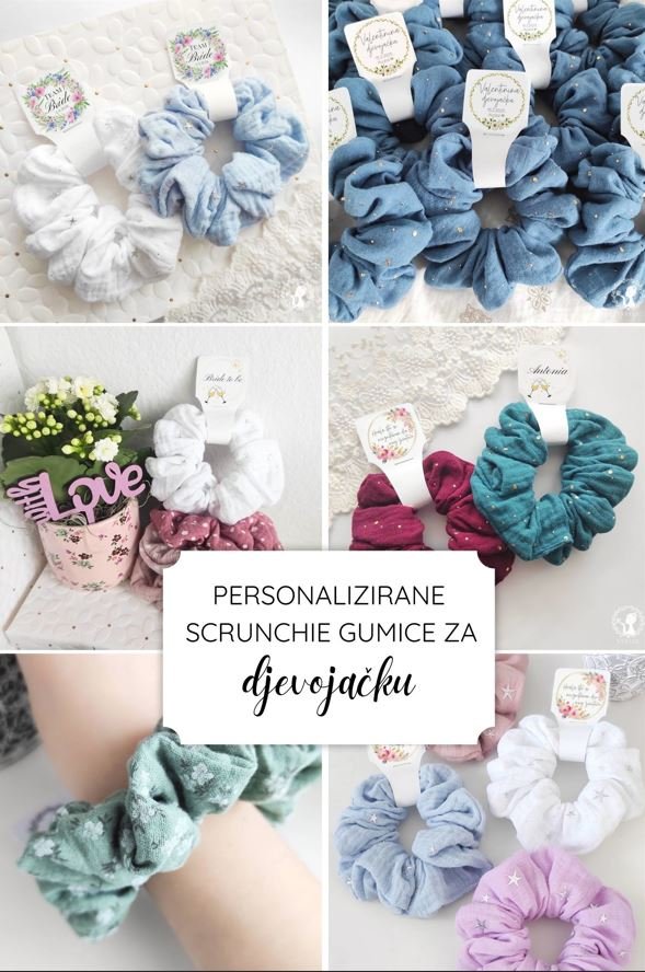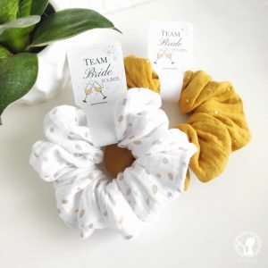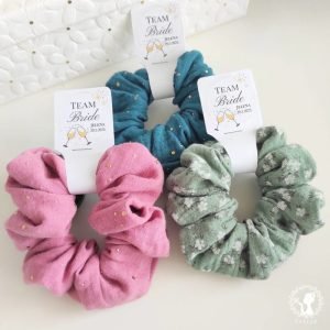 Scrunchie gumice Soft Glam izrađuju se od pamuka s raznim uzorcima poput zlatnih točkica, popularne su zahvalnice za djevojačku večer zahvaljujući predivnom izgledu i personaliziranoj etiketi. Na etiketu je moguće napisati tekst po želji, stoga su gumice prikladne i kao zahvalnice za rođendan ili ostale prigode.